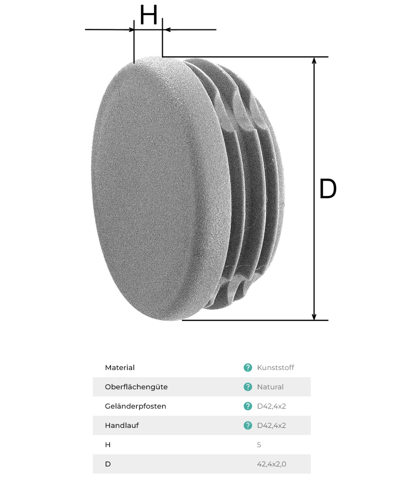 PVC Endkappe 42,4x2,0 mm grau Rohr Abschlussdeckel Kunststoff Kappe