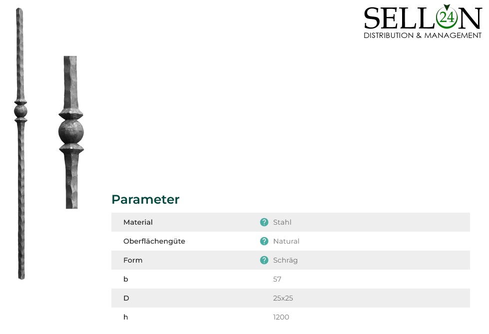 Stahlpfosten 1200mm Geländerstab Eisenstange Zierstab mit Element Zaunpfosten